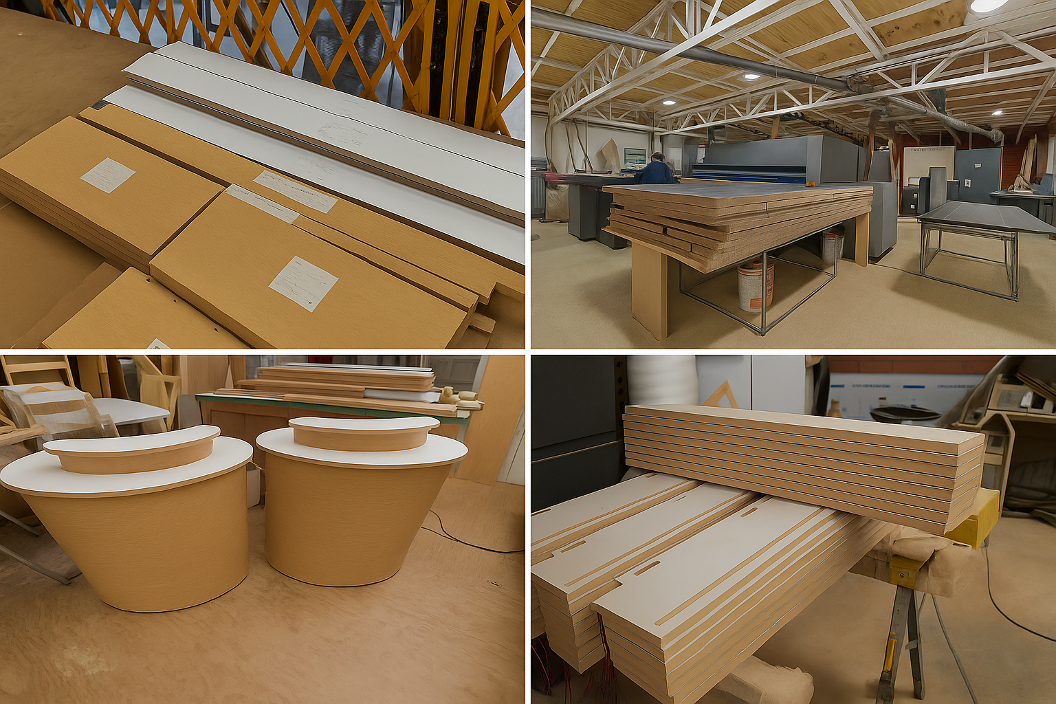 En nuestro proceso de producción, transformamos todo tipo de materiales no ferrosos como maderas, aglomerados, acrílicos, entre otros. Además, subcontratamos la transformación de metales que se integran a nuestro diseño.